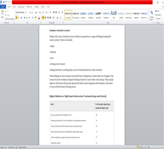 Web Research on Unmet Needs of Cancer Patients